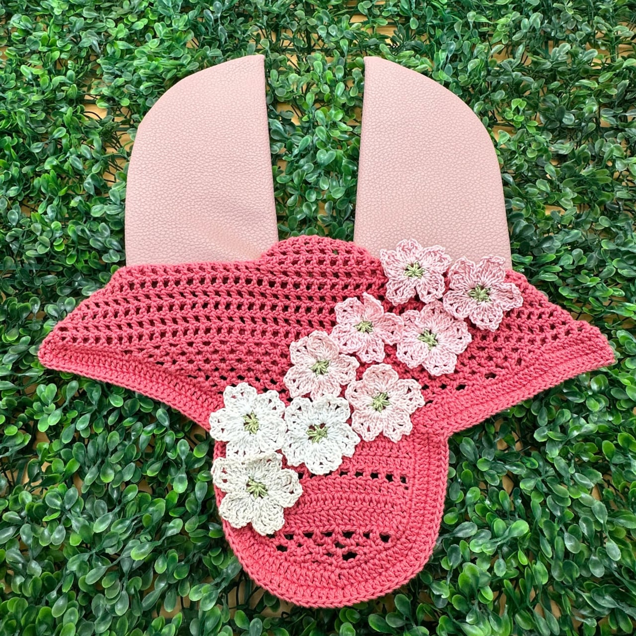 サクライヤーネットはグラデーションのサクラが特徴的なイヤーネットになります。愛馬の額にサクラが満開になります!